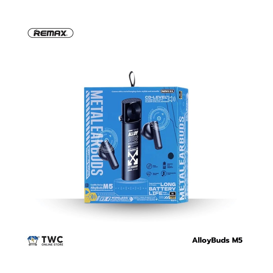 The Remax AlloyBuds M5 are metal true wireless stereo (TWS) earbuds designed for both music enthusiasts and gamers. They feature a compact semi-in-ear design that ensures comfortable, long-term wear without discomfort.