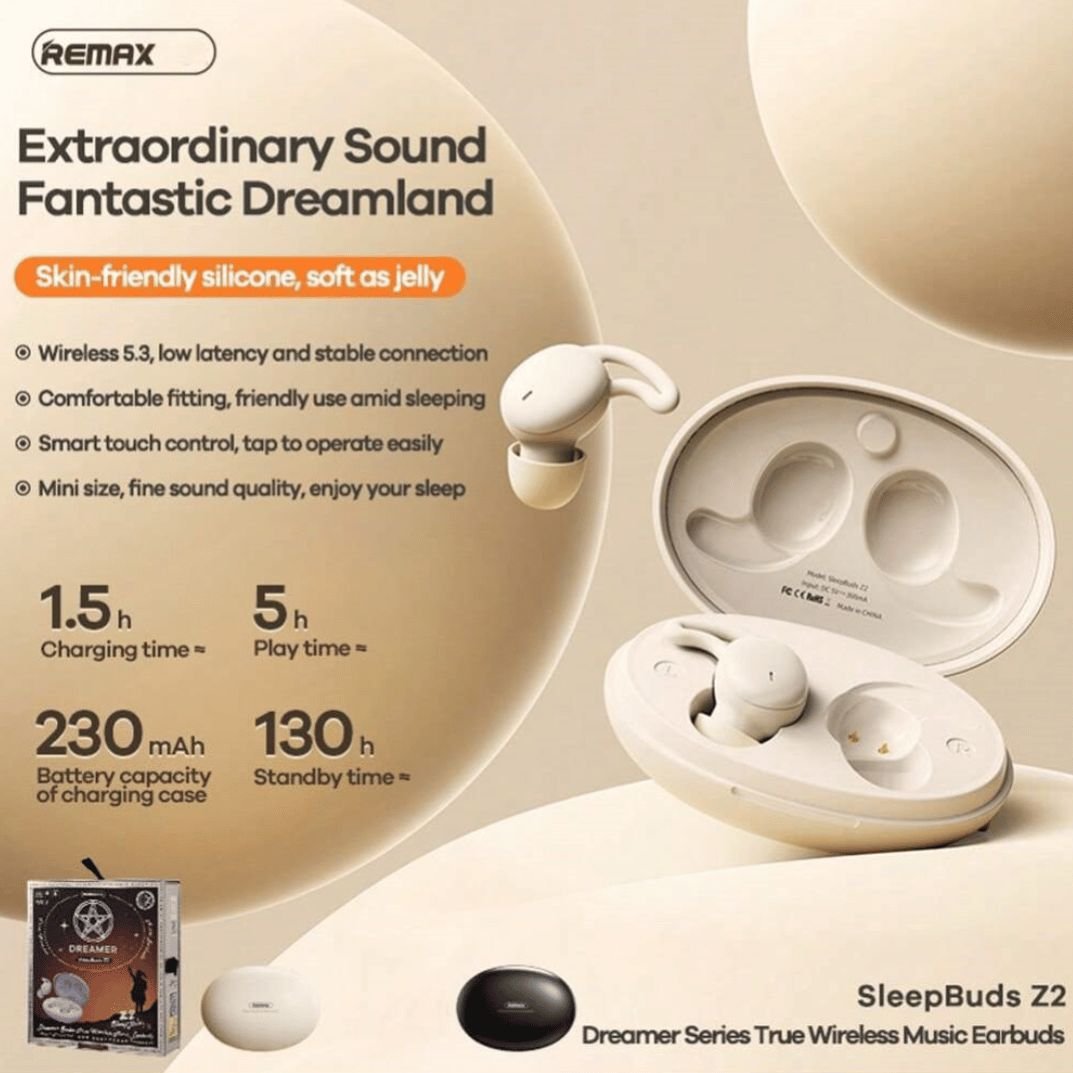 Experience a new level of relaxation with the Remax SleepBuds Z2, designed to help you drift into deep sleep with soothing music. These ultra-lightweight and ergonomic sleep headphones provide a comfortable, snug fit, making them perfect for side sleepers. With advanced noise isolation and wireless convenience, the SleepBuds Z2 ensure uninterrupted rest, whether you’re at home or traveling.